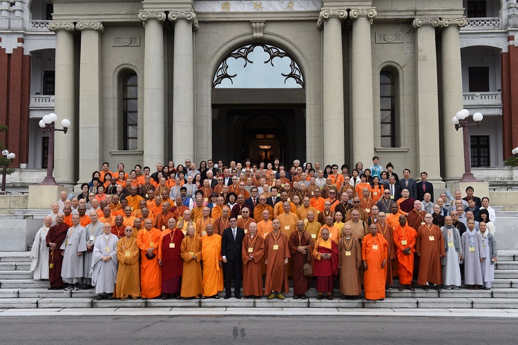 一、佛陀以大事因緣出現世間,開示悟入佛之知見,而令眾生離苦得樂,究竟解脫。我們僧伽為佛弟子七眾之首,秉承佛陀教示,以弘揚佛陀教法,利樂一切眾生為本務。因此,我們地無東西南北之分,人無種族教派之別,世界僧伽是一家,共同勤修勤學,上求下化,朝向「但求眾生得離苦,不為自己求安樂」的目標努力前進。