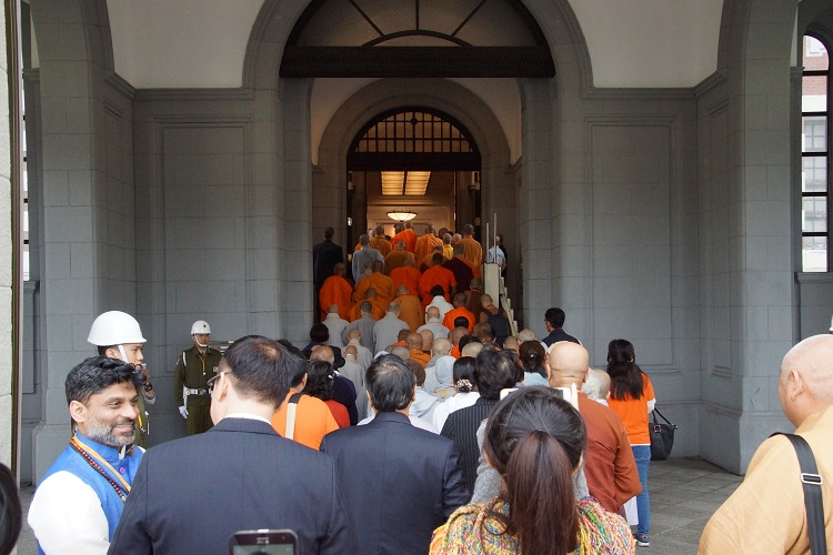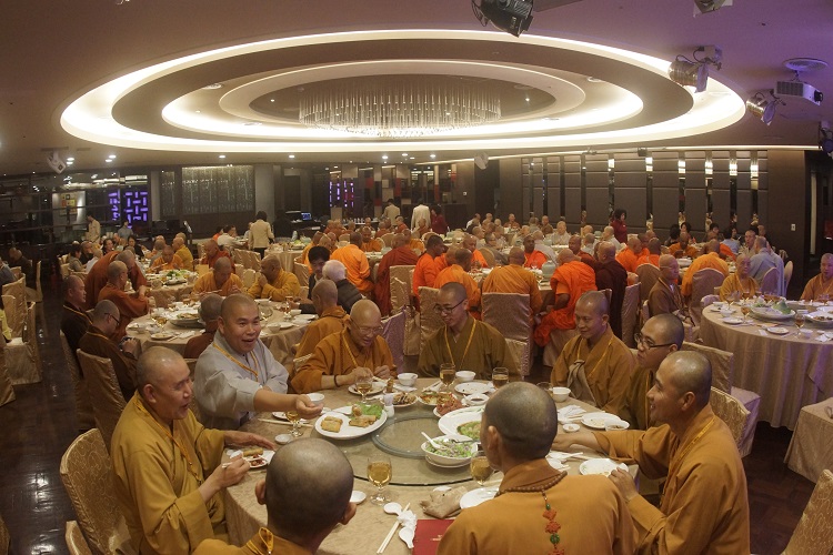 四、眾生的苦難無盡,我們僧伽的悲願亦無盡,不論何時何地,我們誓願永久力行佛陀濟世度生的大願。世界佛教僧伽會第九屆大會,全體會議結束的今天,我們一致宣勉:我們盡形壽,肩負續佛慧命,轉正法輪的使命努力不懈,精勤無間。