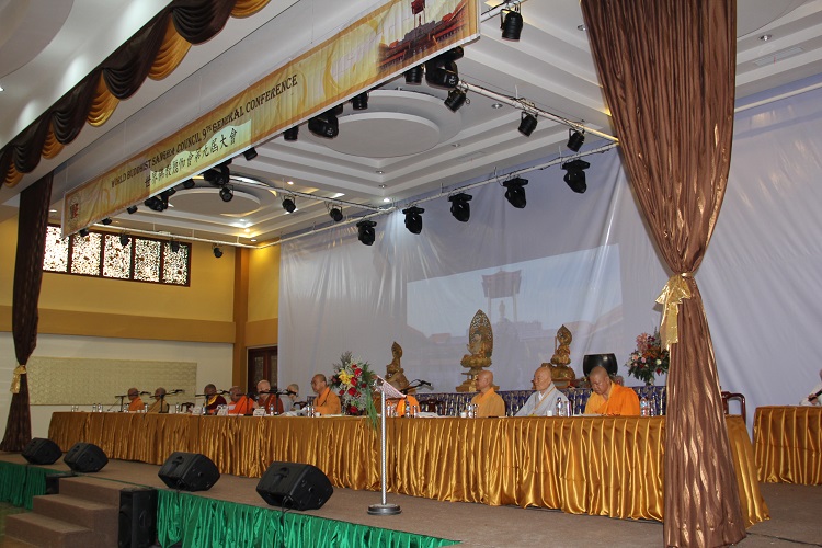 我們來自世界各地的佛教僧伽,於二O一二年,也就是佛曆二五五六年十二月一日至五日,在印尼的棉蘭佛教聖城召開世界佛教僧伽會第九屆大會,會議研討僧伽的弘法利生大業及其他相關議題,一致達成共識,謹以致誠,鄭重發表宣言: