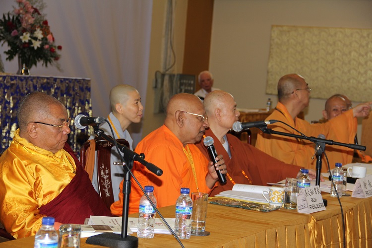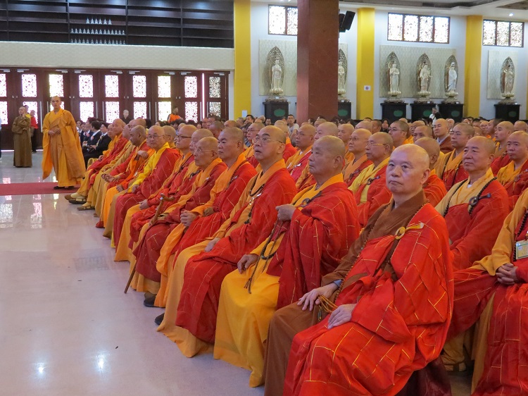 二、僧伽是實踐「和合」的團體,是和諧無諍,淨化身心而得解脫的組合,不能奉行「和合」的規則,是不能稱為僧團的。所以僧伽的融洽與健全,要以「六種和合」為基礎的,在六和中,「見和同解」、「戒和同行」「利和同均」是和合的本質;「意和同悅」、「身和同住」、「語和無諍」是和合的表現,所以僧伽必需奉行六和法則,才能健全平等、和諧、清淨的僧團,而僧伽也才能負擔起住持佛法的責任,使正法久住世間。我們來自世界各地的僧伽,雖然在律制上有聲聞戒、菩薩戒的不同,在制度上有地域、習俗的差異,但是奉行六和的精神是一致,同時今後我們更要將六和的精神,淨化社會,教示人群,創造一個和諧的社會,和平的人間。